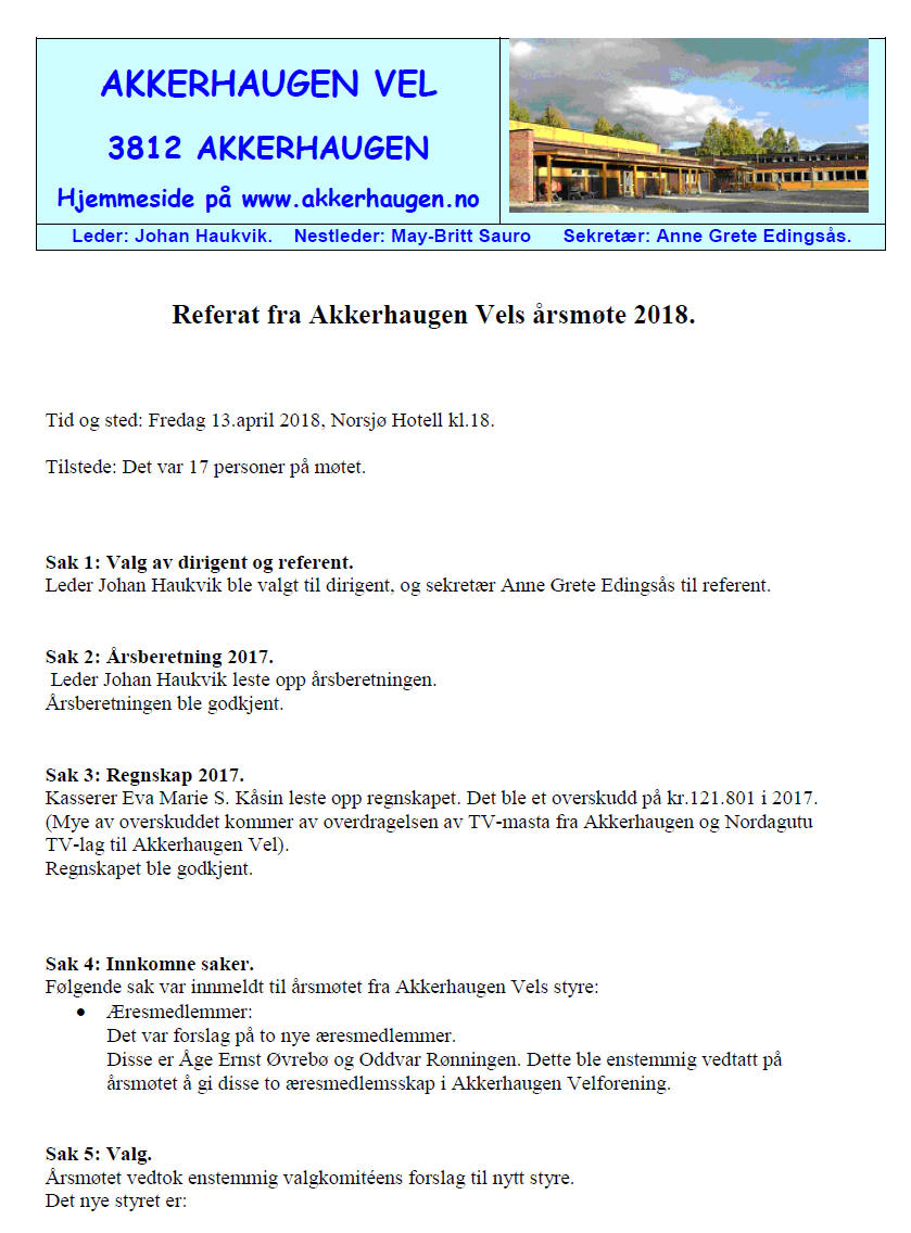 Akkerhaugen Vel er kjent